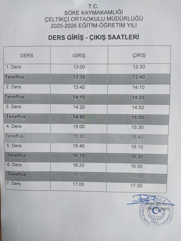 Aydın Valiliğinin aldığı karar gereği okulumuzun giriş-çıkış saatleri değişmiştir.